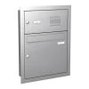 Einwurf und Entnahme erfolgen bei diesem Unterputzbriefkasten von vorne über die Einwurfklappe und eine aufgesetzte Frontklappe.