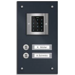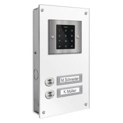 Edelstahl Zweifamilien Türklingel mit Codeschloß und Beschriftungsfeld – 5 RFID Keys